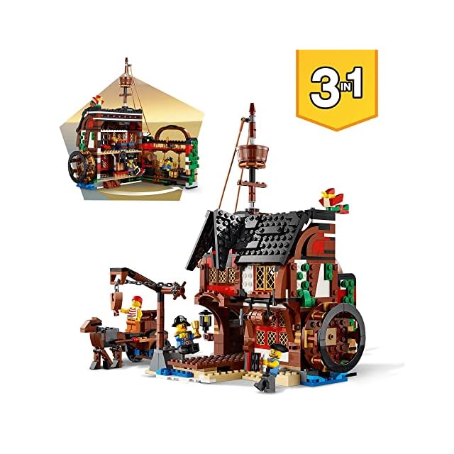 3つのモデル(海賊船、海賊たちの宿、不気味なガイコツ島)から1つをえらんで組み立てられる「3-in-1」のセットです。組み立てや組み替えを楽しめます!