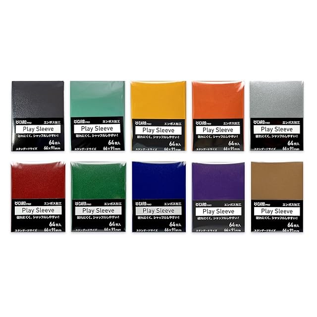 CARD PRO Play Sleeve プレイスリーブ エンボス スタンダードカード レギュラーカード用 1重スリーブ推奨 64枚入 (AA.10色セット, 66×91mm)