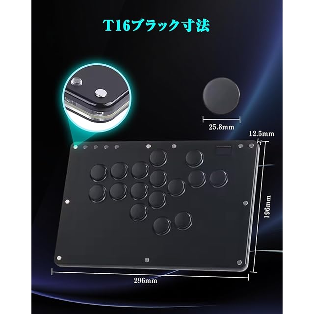 Haute42 アケコン レバーレス レバーレスコントローラー T16 PROブラック ボタン静音強め 押し心地絶秒 スリムで天板広め EVO 大会 膝置き可 無遅延 格闘ゲーム向け For PC Switch2 Switch PS4 PS3等に対応 レバーレス コントローラー TYPE-C RGB LED ホットスワップ 向け アーケートコントローラー アーケードスティック 連射機能