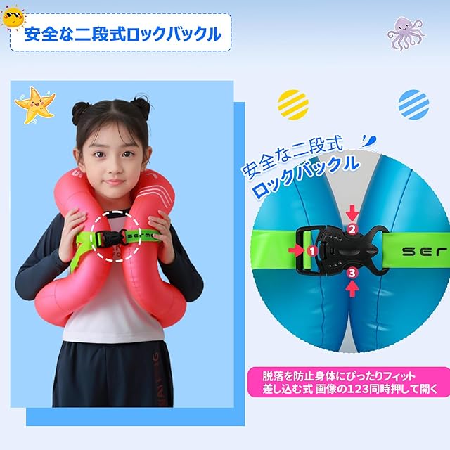【新型浮き輪ウェア】「より安全より安心」 韓国浮き輪法定認証商品,KC 認証済み、アメリカ ヨーロッパ 韓国人気商品、子供の水泳安全を守る製品の開発に尽力しています。子供の泳ぎの安全は、私たちみんなで守りましょう。色:ピンク ブルー。サイズ:15-25kg、25-50kg。