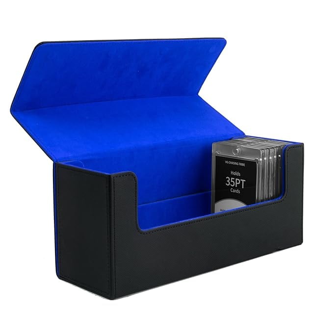 HG CHASING TRIBE デッキケース トレカケース マグネットローダー 用 ケース PU レザー 33枚のマグネットローダーを格納できます カード800枚収納 大容量 スリーブ対応 トレーディングカードケース (800枚のカード収納, 黒、ブルー)