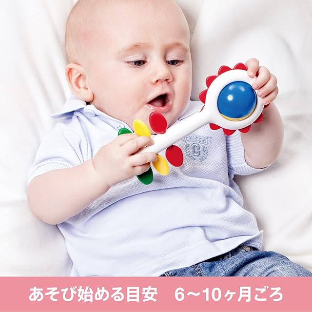 ひまわりと葉っぱがくるくる! 歯固めの機能もついているラトル