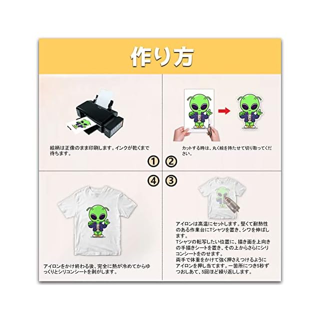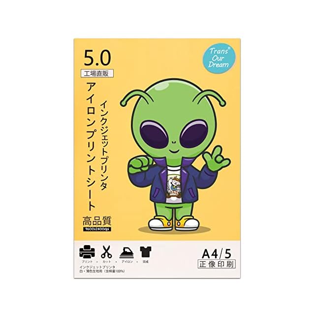TransOurDream 真正の転写シート アイロンプリントシート A4 5枚 白・薄色生地用 転写シール 転写紙 Tシャツ転写シート アイロンプリント用紙 インクジェットプリンター用 洗濯に強い JP-2-5-5