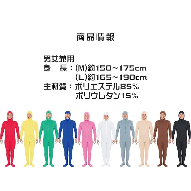 [PURE] ピュア 全身タイツ ストレッチ 顔出し 変装 M ホワイト