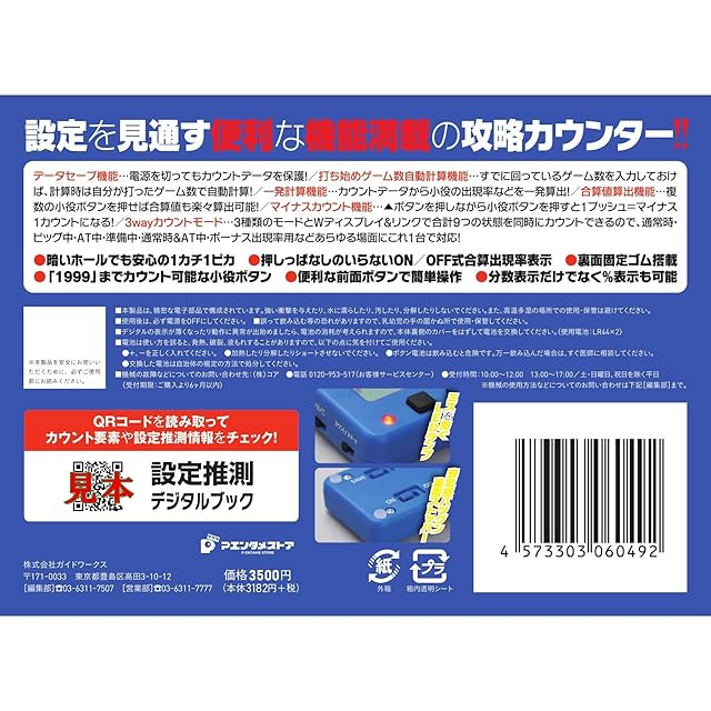 ●大きくて見やすい液晶表示。●Wディスプレイ。●リンク機能。●LED機能。●押しっぱなしのいらないON/OFF式合算出現率表示。