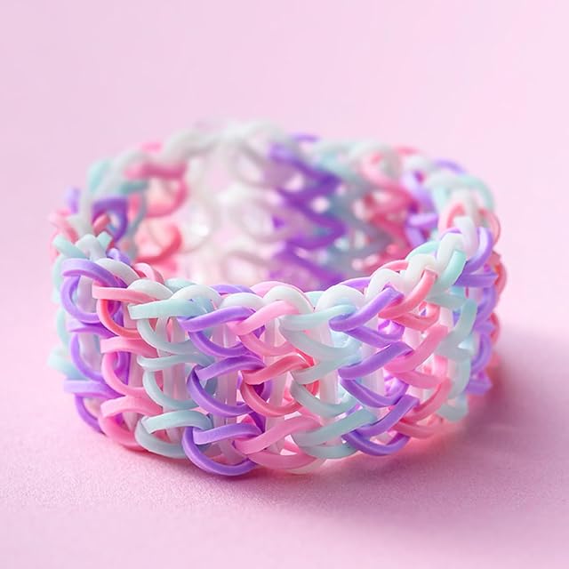 専用の編み機と編みぼうで輪ゴムを順番に引っかけていくだけで、誰でも簡単にゆめかわなアクセサリーをつくることができるキットです。