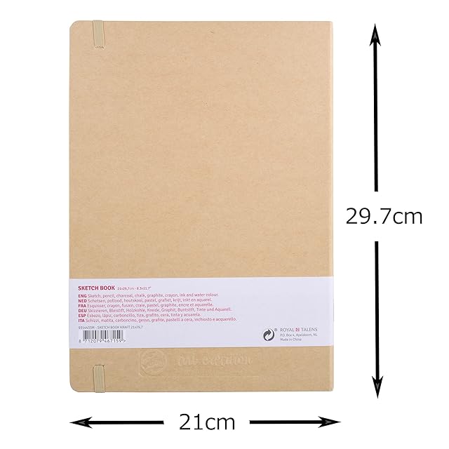 ターレンス アートクリエーションスケッチブック 絵を描く手帳 21×30cm クラフトペーパー 厚み140G/M2 細目 中性紙 80枚綴じ T9314-433M 452280