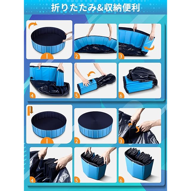 【折りたたみ式&持ち運び便利】ペット用プールは折りたたみ式のデザインを採用しており、省スペースで簡単に収納できます。どこにでも持ち運びやすいです。工具や組み立て不要だから、一人だけでも広げることができます。