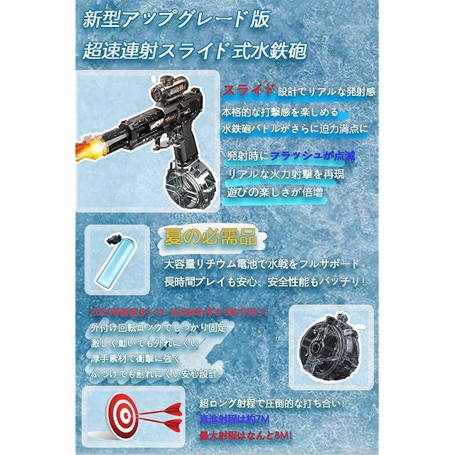 【7-8Mの遠距離射程・USB充電式】 最大8Mの直線射程&7Mの弧線射撃が可能!USB充電式でエコ、強力な水圧で水戦を制覇しよう!