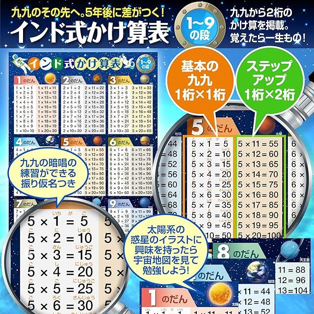 color:地図/インド式かけ算(1-9の段)宇宙 お風呂ポスター2種類セット: