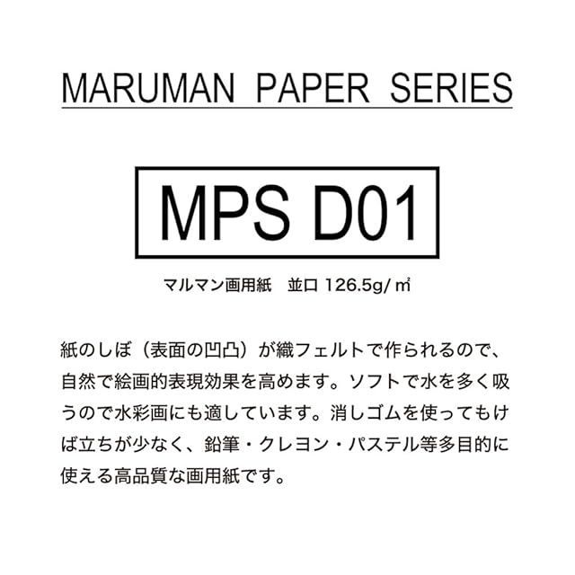 水彩画ととても相性の良い紙質ですが、もちろんデッサン等にも使い易く、鉛筆、色鉛筆、パステルなど、画材関係なく使用できます。