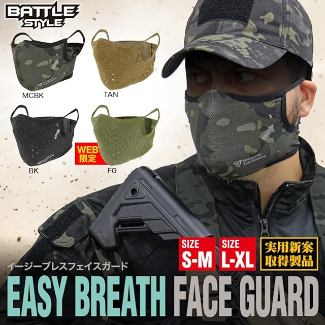 [LayLax][イージーブレスフェイスガード][ L-XL] [BATTLE STYLE/バトルスタイル] エアソフト ブラック