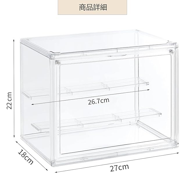 【商品詳細】サイズ:横幅27×奥行18×高さ22cm。UVカット、マグネット前扉。素材:アクリル