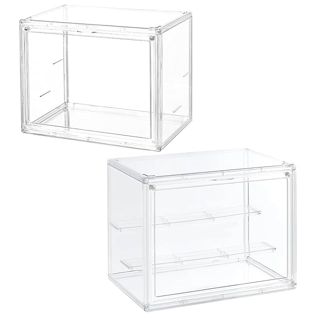 シルフィエル フィギュアケース UVカット 透明展示ケース アクリル 収納 防汚れ マグネット式 磁石付き コレクションケース 組み立て式 積み重ね可能 (27×18×22cm(仕切り板付き))