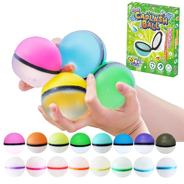 初登場!ありそうでなかった、くり返し遊べるエコで楽しい新しい水風船.。 一回で割れてしまう今までの水風船とは全く違う水遊びに不可欠な新しい水風船です。 やわらかく耐久性があるシリコン素材で出来ているので安心して遊べます。割れない水風船は経済的で片付けも簡単です。 16個の内蔵されたマグネットがくっつき一瞬でボールが完成。子どもから大人まで、お庭やプールに公園に山川海、日常からイベント・アウトドアまでどこでも遊べる新感覚の水風船です。