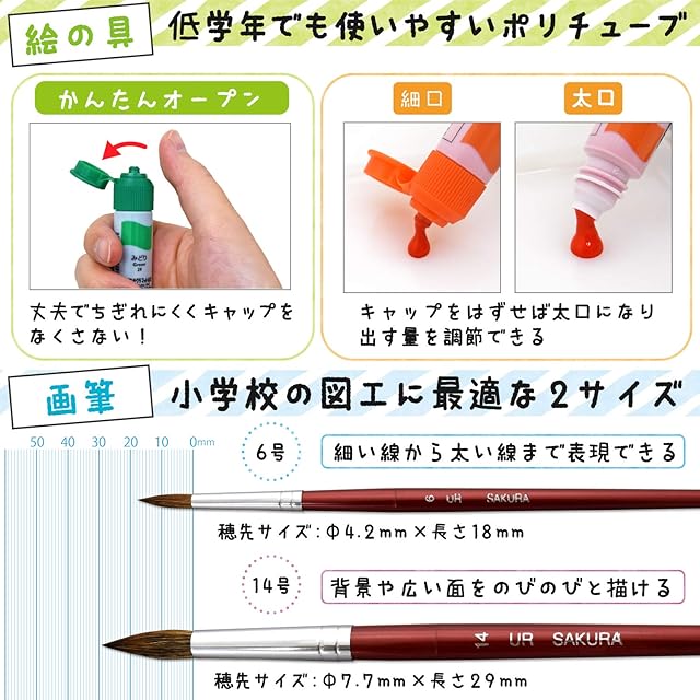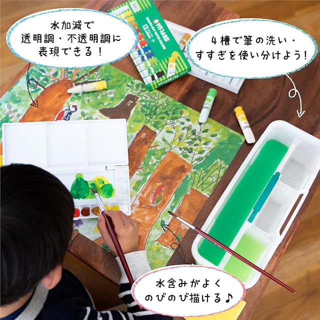 【セット内容】マット水彩絵の具12色・角型筆洗・パレット・画筆×2本・筆筒・筆ふき用スポンジ