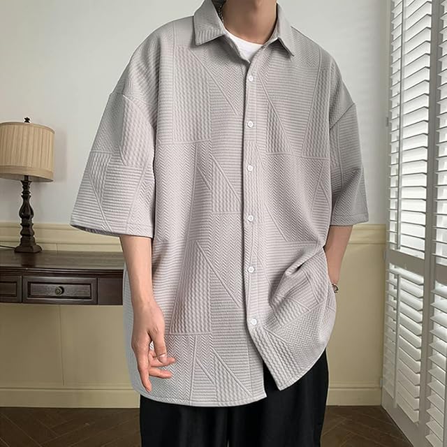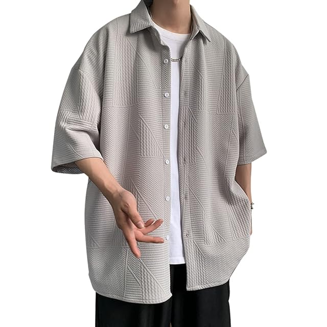 [Aaronlive] メンズ シャツ 半袖 夏服 無地 大きいサイズ カジュアル オシャレ おしゃれ ゆったり シンプル 軽い 柔らかい 人気 服 シャツ メンズ gray XL