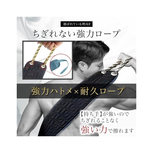 * 【大きな背中も簡単・楽々に洗えます】タオルの両端に持ち手用の輪がついていますので、ボディーブラシでは届きづらい箇所も簡単・楽な姿勢で洗うことができます。背中のかゆみを抑え、スッキリの気持ち良さです。長さは、取っ手部分を合わせ約 1メートルと長めで背中を擦りやすく、表・裏で粗面が異なり、部位やお好みにより選択できます。