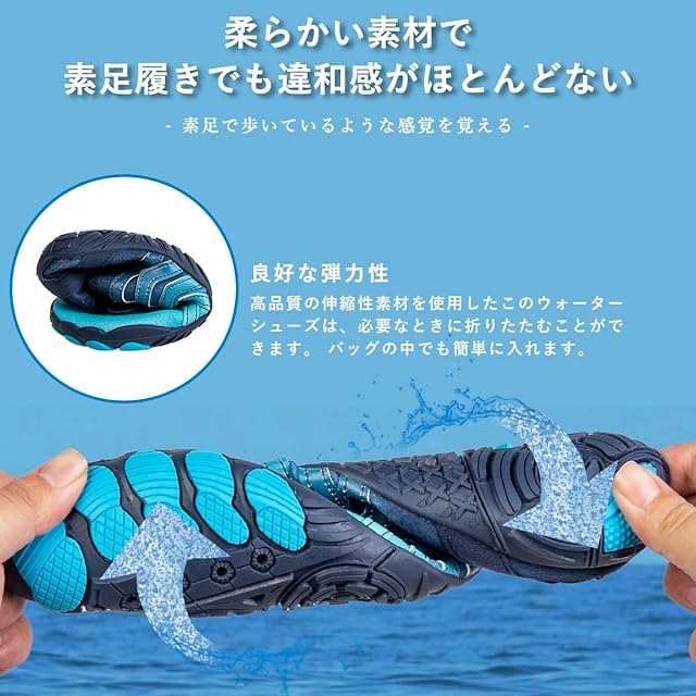 【軽量で柔軟】このウォーターシューズは、軽量設計で、柔軟性があり、折りたたむことができるので、長く快適に使用することができます