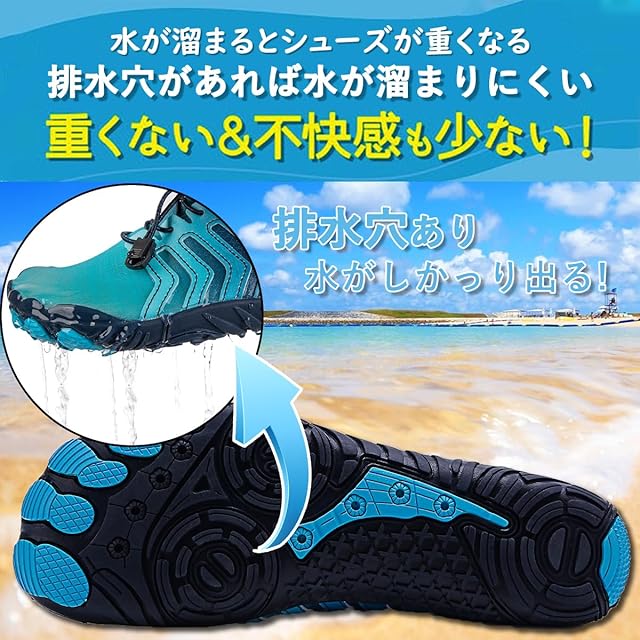 【滑り止め効果】すべりやすい水面でも転ぶ心配がない滑りにくいウォーターシューズです。 また、耐久性、耐摩耗性に優れ、長くご愛用いただけます