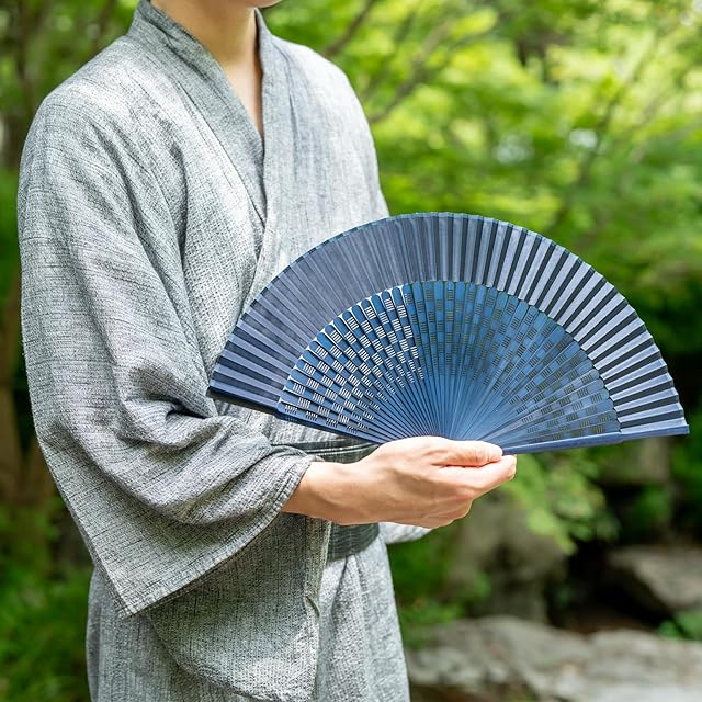 [恵千堂] 熨斗箱扇子 市松骨組 xin02 紺