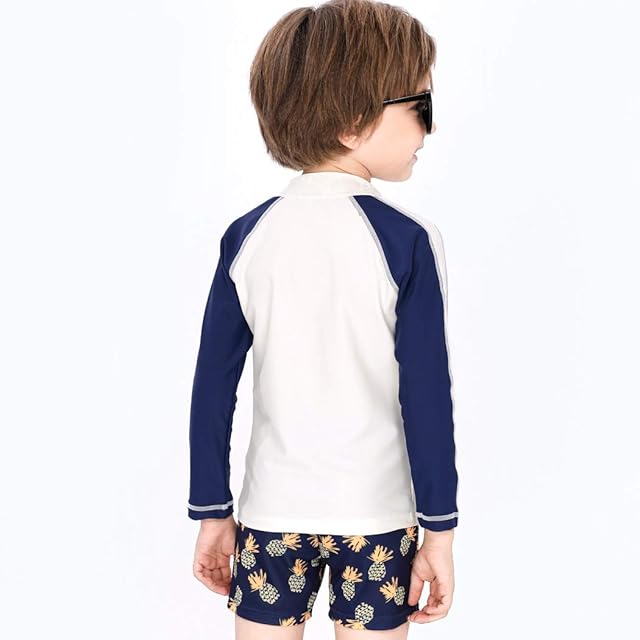キッズ 水着 男の子<br> 90cm~140cm 3SET<br> <br> - CheckPoint -<br> 「サメ柄&パイナップル柄でリゾート感たっぷり!キッズ水着」<br> 組み合わせに迷わない!トータルコーデ☆<br> 長袖で首元から足首までカバー!<br> キャップ付き3点セットだからママも安心HAPPY♪<br> <br> - Detail Check Point -<br> <br> point01<br> \Bタイプ/<br> けがを防ぐ!ジッパーカバー<br> スライダーがカチャカチャせず<br> 思いっきり遊んでも安全◎<br> <br> point02<br> フロント部分に裏地付き!<br> 透けずに安心な着心地◎<br> 大切なお子さまが着る水着!<br> 裏地で安心・快適な着心地に<br> <br> point03<br> ウエストは紐で調節OK<br> 身体にぴったりフィット<br> あると嬉しいウエスト調節◎<br> 身体にぴったり合わせられる♪ <br> point04<br> 熱中症対策にもなる!<br> 嬉しいキャップ付き☆<br> 頭を護るキャップがセット!<br> 手軽に全身コーデがキマる♪<br> <br> 選べる2types<br> ディテールやデザインが異なる2タイプ! お好きな水着で夏を満喫♪<br> ・・A type・・<br> ジッパーカバーなし<br> 膝上丈パンツ<br> <br><br> ・・B type・・<br> ジッパーカバーあり<br> ショートパンツ<br>