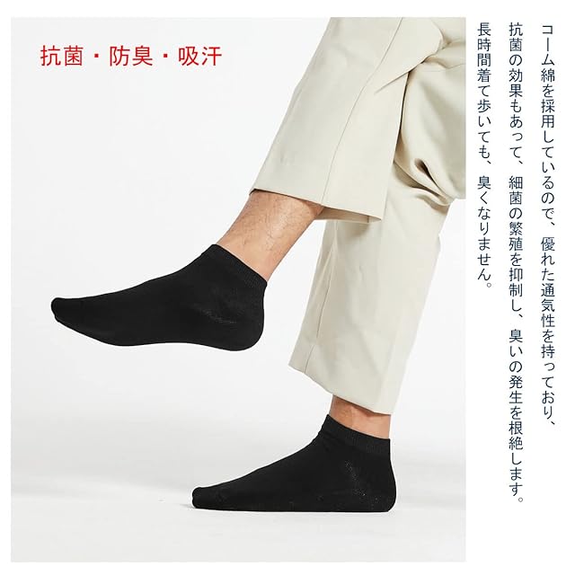 【抗菌・防臭・吸汗】コーム綿を採用しているので、より良い吸湿性と通気性があり、手触りも良く、足を常に乾燥状態に保ちやすいです。また、帯電防止性、強力な脱臭、有効な抗菌の特性があります。細菌の繁殖を抑制し、臭いの発生を抑えます。