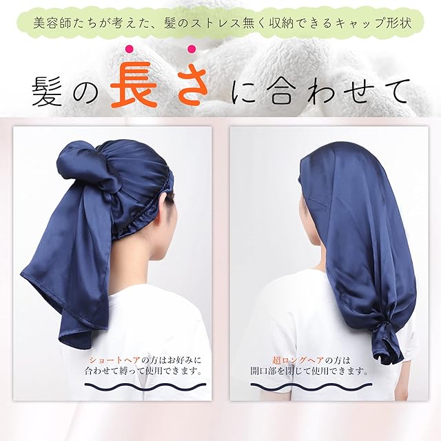 [BeLLφ] 美容師考案 60/80㎝ 簡単装着 完全筒形 シルク ナイトキャップ ないときゃっぷ ヘアキャップ ロングヘア用 枝毛防止 摩擦軽減 (シャンパン60㎝(リボン))