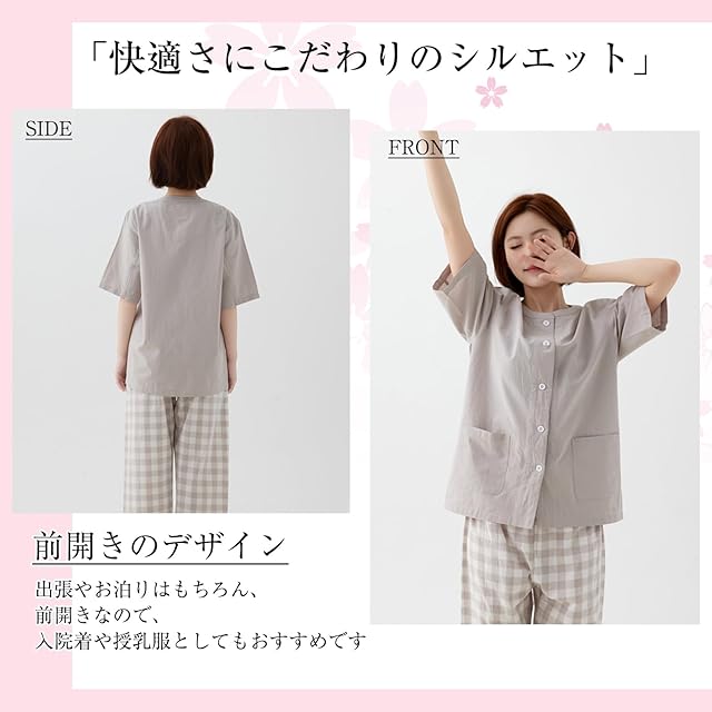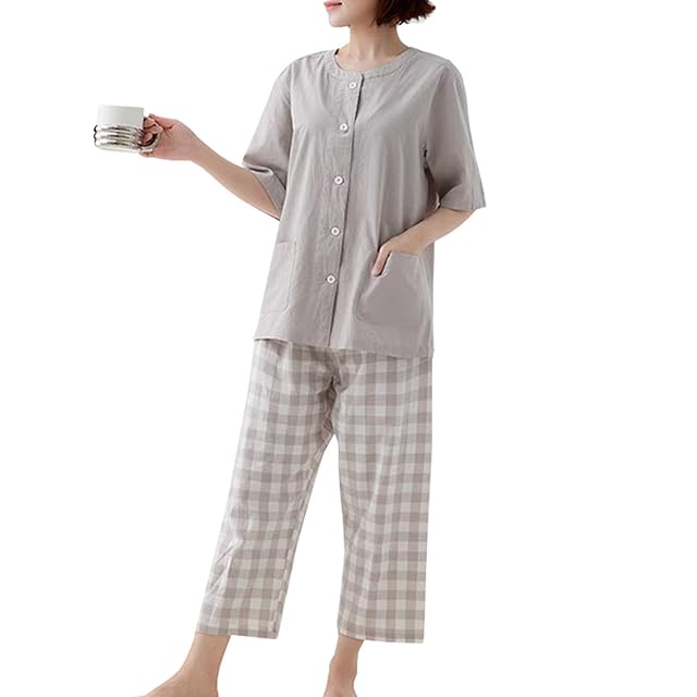 [Sumolux] パジャマ レディース 綿100% 半袖 七分丈 ルームウェア 前開き 上下セット 春 夏 寝巻き 部屋着 吸汗 通気 肌に優しい