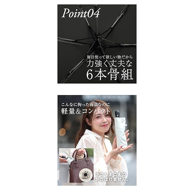 ☂【晴雨兼用*耐風撥水】310T高密度の撥水加工材料で作られ、雨が珠のように丸くなり転がり落ちます。普通の傘より撥水性が優れ、軽く振るだけで雨水を振り払えます。長い間使用しても雨の染み込みが気にならなくなりました。電車内等の公共の場では人にご迷惑を掛けません。また防汚効果もあり、汚れにも強い生地です。中棒は頑丈航空機用アルミ合金製造、6本の傘骨にグラスファイバーと航空機用アルミ合金を使用しました。耐久性に優れています。強風で裏返っても元に戻ります。