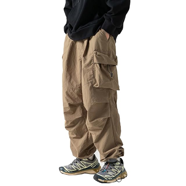 商品名:[FLYSHION] カーゴパンツ メンズ 涼しい ズボン 夏服 冷感 アイスシルク ワイドパンツ 撥水 アウトドア ワークパンツ リラックスパンツ 無地 大きいサイズ ゆったり 調整紐 ロング丈 ボトムス 男女兼用 春 夏 秋
