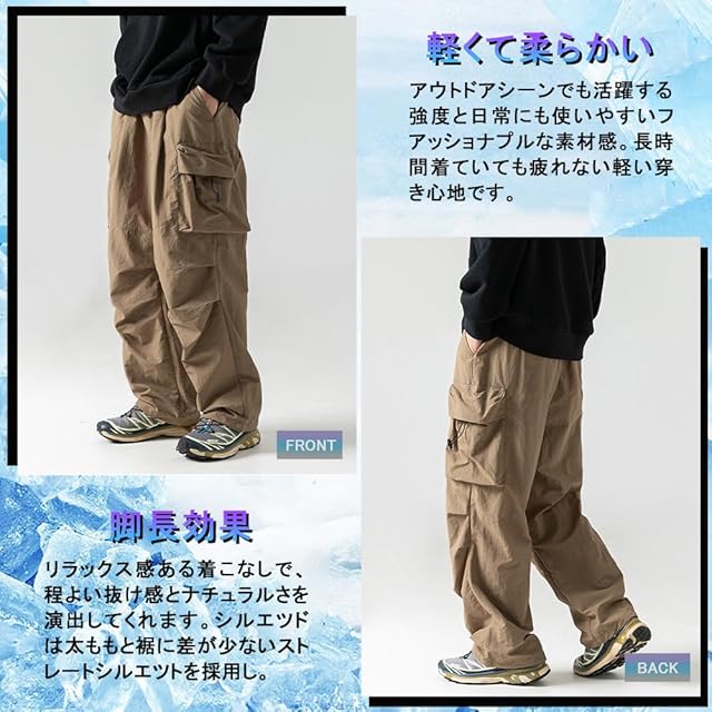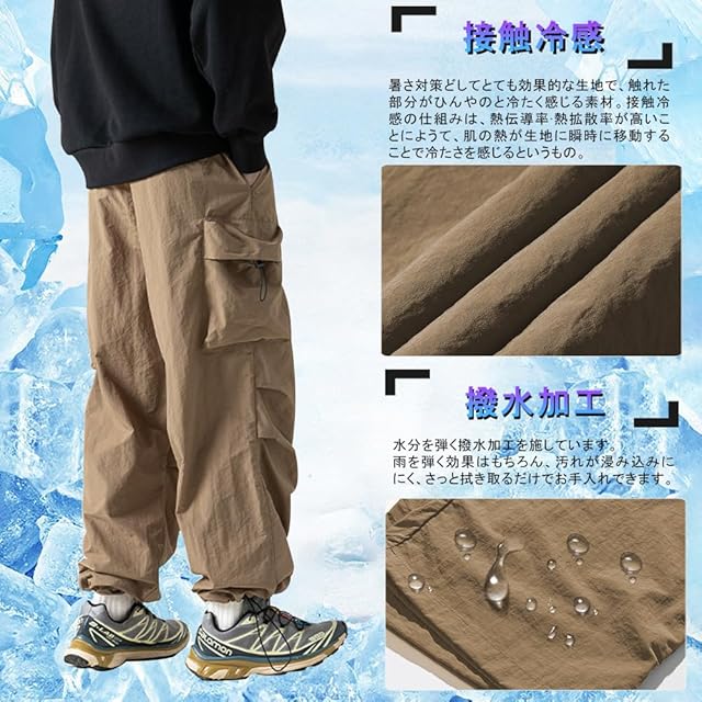 [FLYSHION] カーゴパンツ メンズ 涼しい ズボン 夏服 冷感 アイスシルク ワイドパンツ 撥水 アウトドア ワークパンツ リラックスパンツ 無地 大きいサイズ ゆったり 調整紐 ロング丈 ボトムス 男女兼用 春 夏 秋