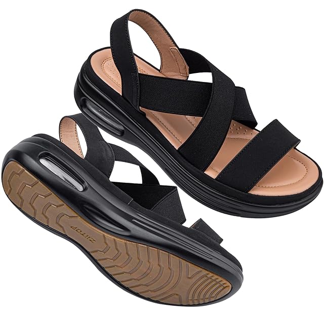 [Maxome] サンダル レディース 歩きやすい ゴムバンド 厚底 スポーツサンダル エアクッション クロスベルト 夏 疲れない 軽量 痛くない オフィスサンダル スリッポン ウォーキング ウェッジ 美脚 通勤 カジュアル おしゃれ