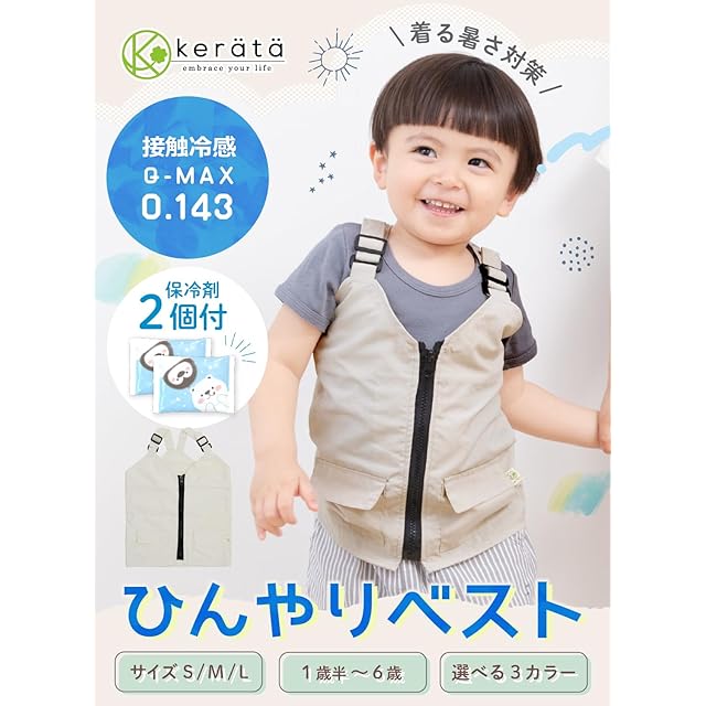 [ケラッタ] ひんやりベスト 保冷剤ポケット付きウェア 熱さまし 赤ちゃん 子供 キッズ 暑さ対策 硬くならない保冷剤2個付き