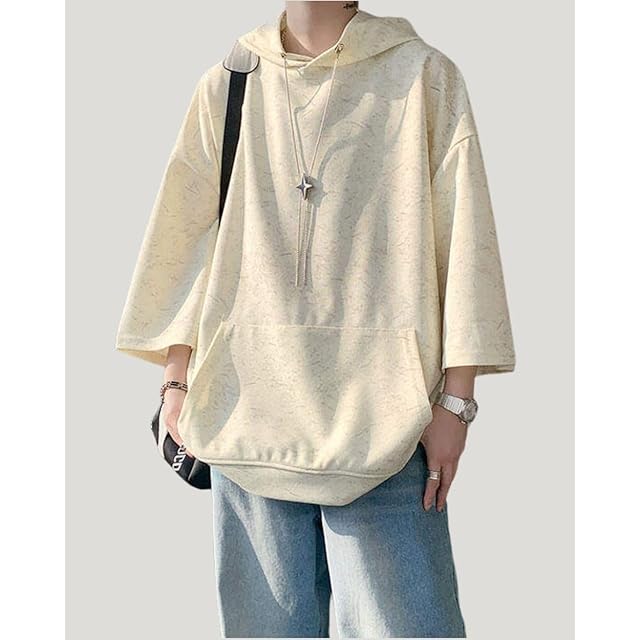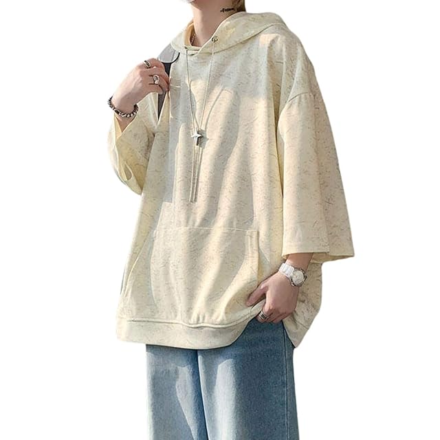 パーカー 夏服 メンズ 七分袖 Tシャツ 大きいサイズ ゆったり おしゃれ タイダイデザイン フード付き 夏用 薄手 クール素材 アウトドア カジュアル ポケット付き プルオーバー シャツapricot-4XL