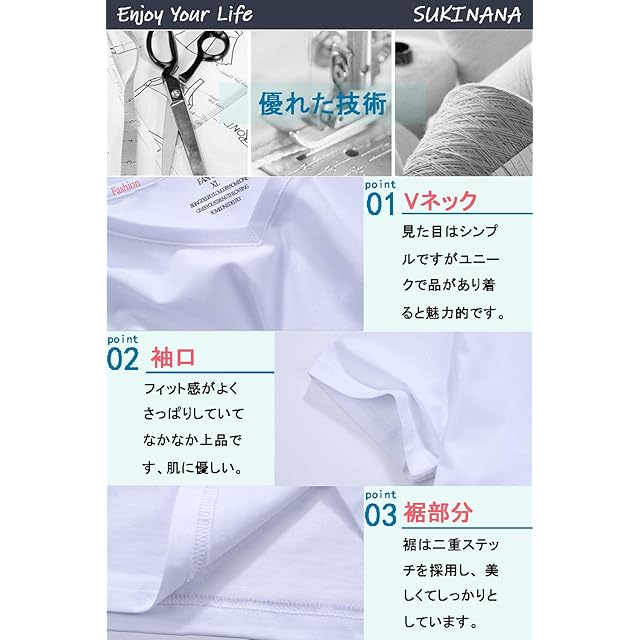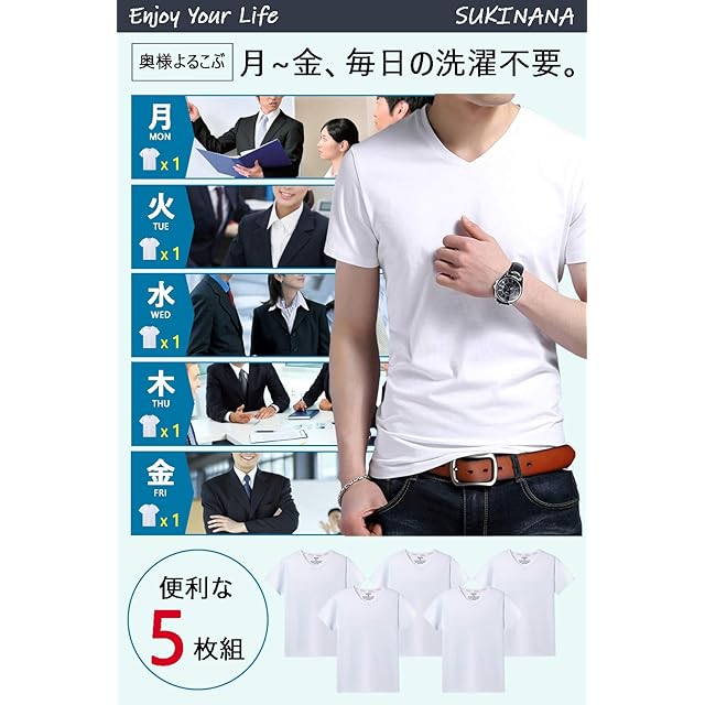 商品名:Sukinana インナーシャツ メンズ 肌着 5枚組 綿100% Vネック tシャツ 半袖 防菌防臭 クセになる肌触り 無地 メンズ 服 (L, ホワイト)