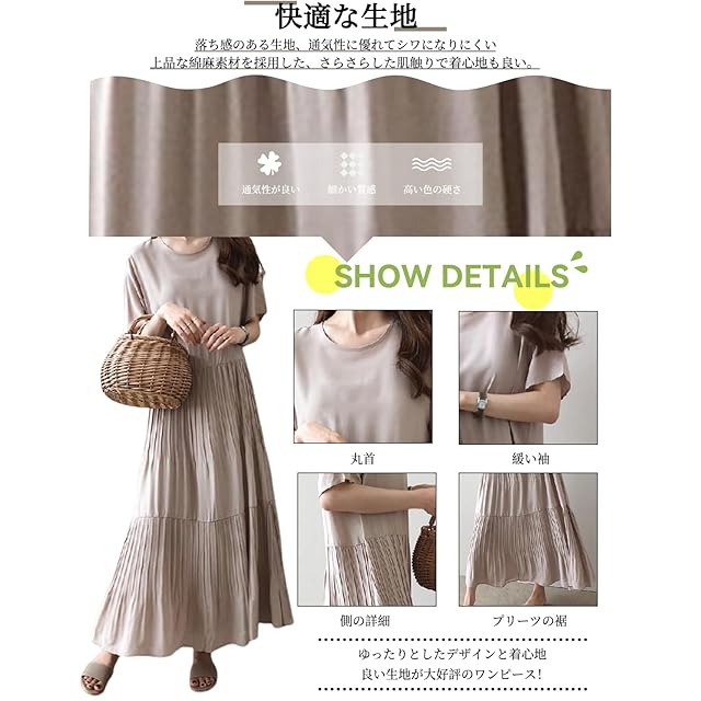 無地でナチュラル感と高級感とも溢れている森ガール風ワンピースが登場しました。ゆったりとしたシルエットで体型カバーしてくれて嬉しいです。肌触り良くて、優れた通気性と柔らかさも兼ねる綿麻混素材で爽やかな着心地になります。ロング丈でサラリと着こなしになり、ふんわりとした裾で歩く度に知的でエレガントな女性美しさが展開されました。