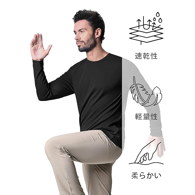 商品名:[KEFITEVD] 長袖tシャツ メンズ スポーツ ゴルフウェア uvカット ティーシャツ 吸汗速乾 ランニングウェア ジョギング サイクル 服 インナー 作業着 ブラック L