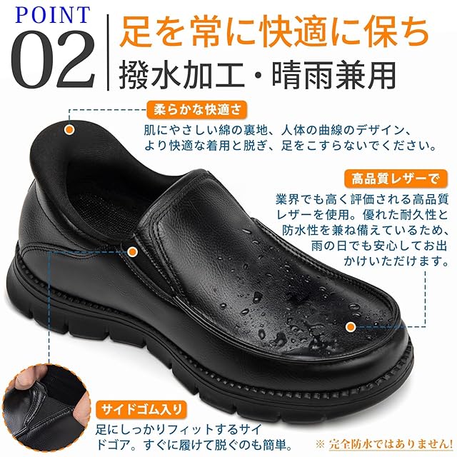 「専門的な設計で快適さとフィット感を追求」このスリッポンシューズは、両サイドに伸縮性のあるゴムバンドを採用し、簡単に履けるだけでなく、しっかりとフィットします。さらに、日本人の足に最適化された木型を使用しており、足の形状にぴったり合うため、長時間の歩行でも快適です。溝設計を採用、歩行時の足の動きに合わせて自然にサポートします。人間工学に基づいたデザインで、足への負担を軽減し、歩きやすさと安定感を提供。デイリーユースに最適な一足です。