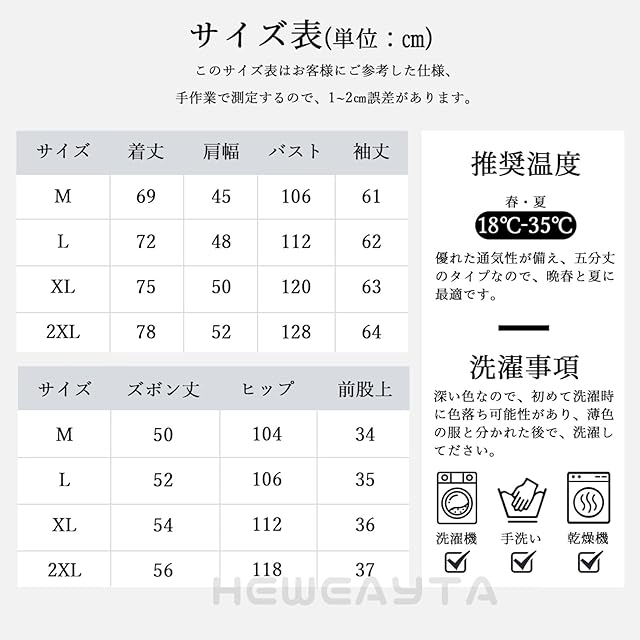 [適用場所]パジャマとしてはもちろん、普段著感覚のシンプルなデザインですから、ルーム、バスルーム、スポーツ、デイリー、コンビニ、トレーニング、お散歩、にも使えます。無地のパジャマだから、幅広い年代に人気があります。パジャマとしてはもちろん、普段著感覚のシンプルなデザインですから、ルーム、バスルーム、スポーツ、デイリー、コンビニ、トレーニング、お散歩、にも使えます。 この一着で夏の日々もっと快適に:開放感で蒸し暑い夏の夜も快適にお過ごいいただけます。 お風呂上がりにこのパジャマを著て、爽やかを感じます。寢苦しい夜とセイグッパイ。肌に優しいので、肌が敏感な人にもオススメです。洗うたびに柔らかさは増し、長く着るほど素材の良さがアップします。綿の快適な着心地で快眠できます。 手洗いにも洗濯機にも対応でき、お手入れも楽々に行え、繰り返し洗濯しても変形しにくいです。洗濯機をご利用する場合は、洗濯ネットに入れて 洗濯してください。また、漂白剤と乾燥機の使用はお避け下さい。