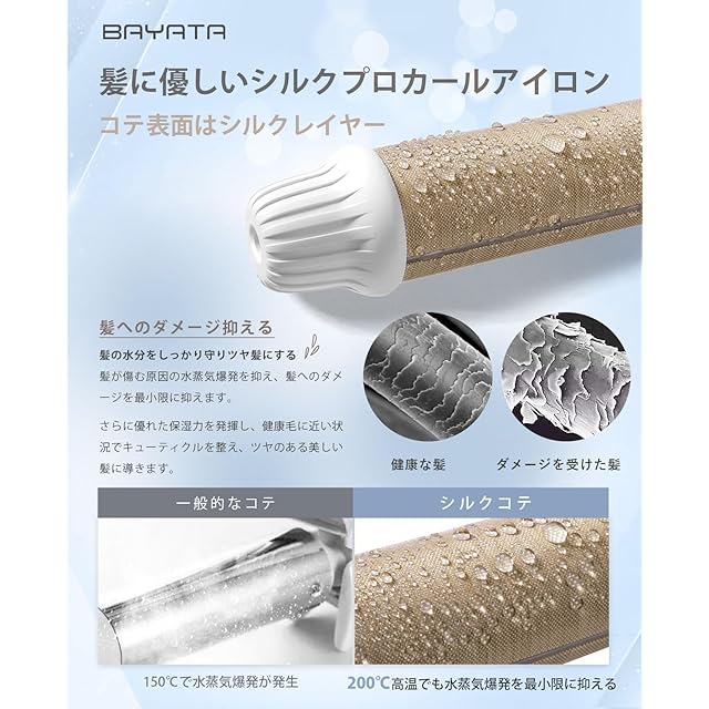 BAYATA コテ 32MM ヘアアイロン カールアイロン シルクプロコテ【瞬間水分蒸発しない・140℃〜220℃・マイナスイオン・海外対応】5段階温度調節 全髪質対応 急速立ち上がり 1時間自動オフ 100V-240V海外対応