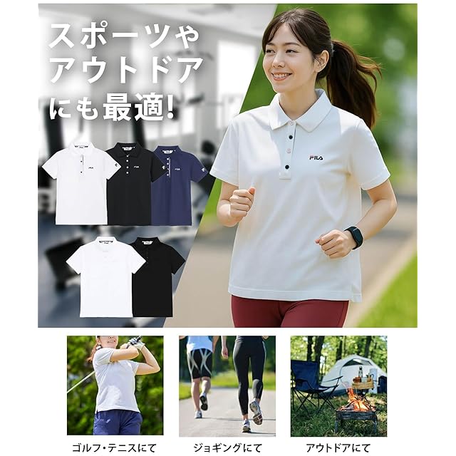 商品名:[フィラ] ポロシャツ レディース 長袖 半袖 速乾 2タイプ ゴルフウェア トップス シンプル 刺繍 ロゴ テニスウェア fl1553ネイビー(速乾) M