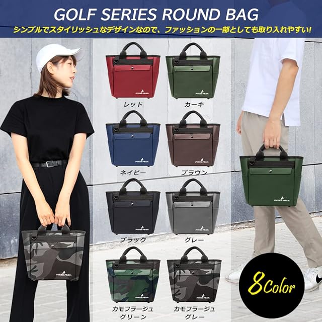 ✅【PYKES PEAK から待望の新商品が登場!】ゴルフ初心者からベテランまで幅広い層に人気のPYKES PEAKより新しく「ラウンドトートバッグ」がついに販売スタート!ラウンド時の悩みを解決し、よりゴルフを楽しんでもらうため男女50名のゴルファーを対象にしたアンケートを実施!その結果に基づき、使いやすさ・機能性・デザイン・品質すべてがバランスよく設計され、コストパフォーマンスも抜群の新商品となっています!✅【大容量の8つの収納ポケット】ラウンド中に持ち歩くため使いやすさや機能性などを重視し、一から作り上げたラウンドバッグです。大きすぎず小さすぎないコンパクトサイズですが、プレー中に必要なアイテムなどをまとめて収納できる「8つのポケット」が付いています。①ペットボトルなどが入る大容量ポケット、②時計、携帯など貴重品を急な雨から守るカバー付きポケット③携帯、ガムなどをすぐに取り出せる用の2つサイドポケット④ティー、ペンなどが入るジッパー付きバックポケット⑤化粧品などの小物を保管できるジッパー付きインナーポケット⑥イヤホンやモバイルバッテリーが入る2つの内部ポケット。✅【機能性の高いホルダー/安定性抜群の底鋲】収納ポケットの他にも、車や家の鍵を他のものと混ぜないようにする「キーホルダー」やゴルフボールケースやカラビナを取り付けることができる「Dリング」も付いているため、物がごちゃごちゃになる心配がありません。また、バッグの底には「4つの鋲」がついており、地面にバッグを置いても底が汚れず、安定性もあります。また、底が地面に触れないことで、破れにくく長持ちします。✅【種類が豊富なカラー/ 製品仕様】カラーは全部で「8色」!カラーバリエーションが豊富でデザインも無駄を省いた「シンプルでスタイリッシュなデザイン」なので、男女兼用で、ファッションの一部としても取り入れやすいものとなっています。また、防水・撥水性の高い素材である「300Dポリエステル」を使用!雨の日でも中の荷物が濡れる心配なく、安心して持ち歩くことが可能です!本体サイズ(cm):高さ23×幅23×奥行12、商品重量:320gでコンパクトです!