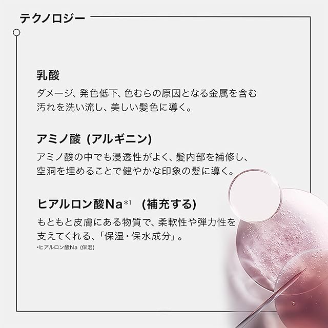 【潤いを与え、鮮やかなヘアカラーを保つデイリートリートメント】 髪内部まで浸透し、色落ちを穏やかに。カラーヘアの内部を補修、保湿しなめらかな質感へ。