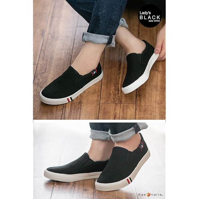 商品名:[Kaenarie] スリッポン スニーカー メンズ レディース デッキシューズ ワンポイント 星柄 おしゃれ 黒 白 キャンバス カジュアル 旅行 室内 男女 入院用 バイト 46(28.0) 3E, 黒 ・ ブラック