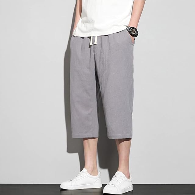 [Platilive] サルエル パンツ ズボン メンズ ミディアム パンツ 七分丈 大きいサイズ ゆったり 綿麻 調整紐 無地 カジュアル おしゃれ パンツ ボトムス イージーパンツ メンズ 夏服 gray L