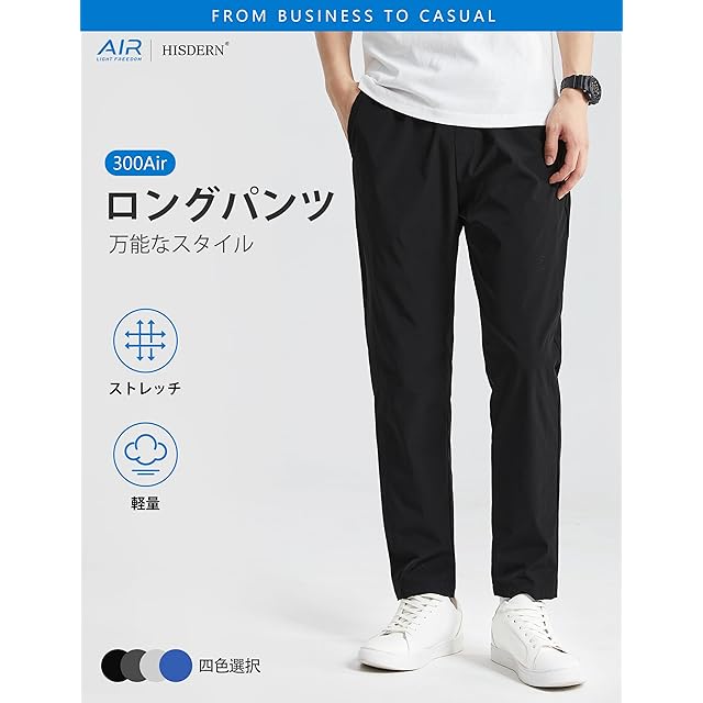 [HISDERN] ストレッチパンツ ジョガーパンツ メンズ 接触冷感 ズボン ブラック 美脚 通気 吸汗速乾 トレーニング スウェットパンツ 作業着 夏 300 Air M