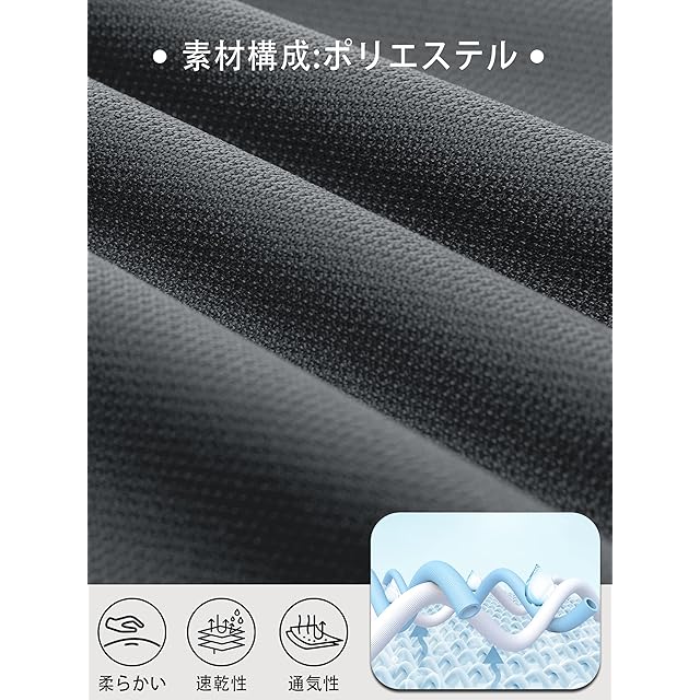 【吸汗速乾・通気性】優れた吸汗速乾性により、汗をかいてもすぐに吸収・発散し、さらっとした快適な着心地をキープ。通気性も抜群で、服内の熱や湿気を効果的に逃がし、暑い日でも爽やかに過ごせます