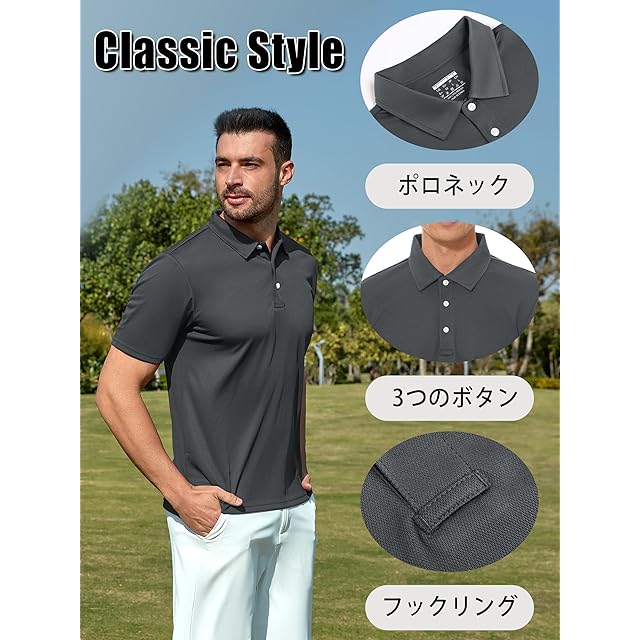 商品名:[KEFITEVD] ポロシャツ メンズ 半袖 ビジネス 作業着 速乾 ワークシャツ 襟付き ゴルフウェア 大きいサイズ ビジネスシャツ ドライ スポーツウェア ハイキング 釣り 夏物 ダークグレー M