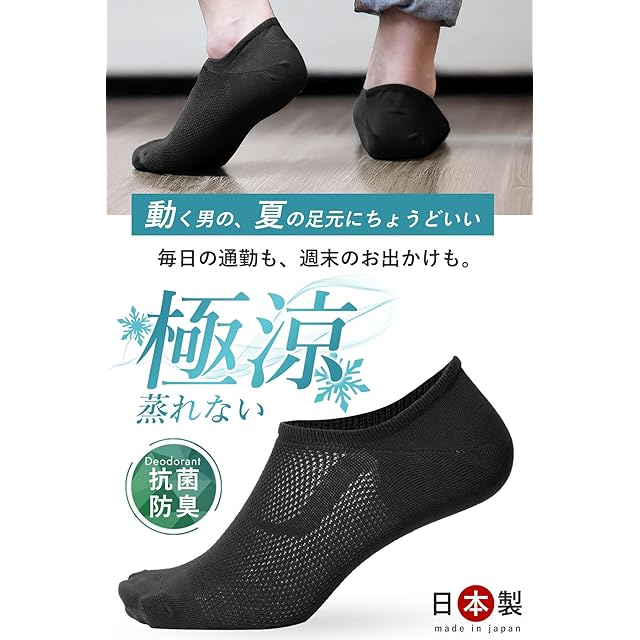 商品名:[男は黙ってこれを履け!] 極めた涼しさ 極涼 【超通気性メッシュ】脱げない 日本製 メンズ フットカバー 靴下 脱げにくい 消臭 抗菌 スニーカー ソックス くるぶしソックス 臭わない 蒸れない 涼しい 防臭 夏 (24-27cm, ブラック3足)